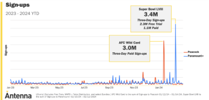 2. Plan for volatility. There will be ebbs and flows in platform subscription rate/audience reach. Build flexible media plans where your brand can connect with audiences leading up to and during these major sports moments.
